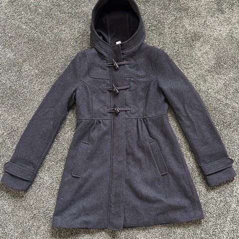 Ihana takki kevääseen tai syksyyn. Villaa ja viskoosia, ei muovikuituja. Taskut, iso kaulus, koko S.