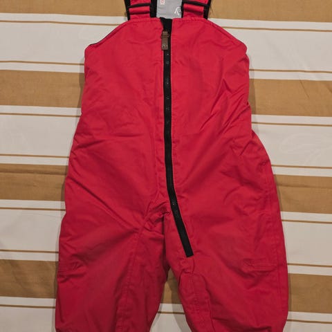 Hyväkuntoiset Reiman toppahousut koko 86, säädettävät henkselit ja ehjät jalkalenkit. Vetoketju lahkeeseen asti helpottaa pukemista. Aavistus pehmentymää polvissa