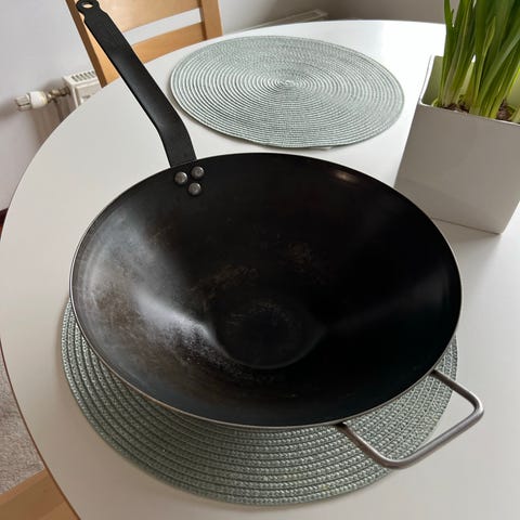 Käyttämättä jäänyt pannu. Pahvi heitetty roskiin. Ei ole edes "käyttöönotto poltettu". Odottanut kaapissa käyttöön ottoa mutta ei olekkaan käyttöä. Halkaisija päältä n. 24 cm ja pohjasta n. 18 cm. Laadukas ranskalainen hiiliteräspannu. Tinkaamiseen en reagoi mitenkään.