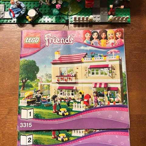 Lego Friend's "Olivian talo". 695 osaa. Hahmot Anna, Olivia, Peter ja kissa. Hyväkuntoinen, puhdas, palat tarkastettu, kaikki palat tallella ainoastaan "kirje" puuttuu. kts.kuva.