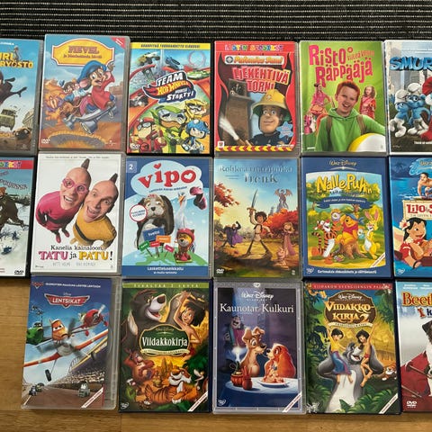 Lasten elokuvia esim. Risto Räppääjä, Postimies Pate