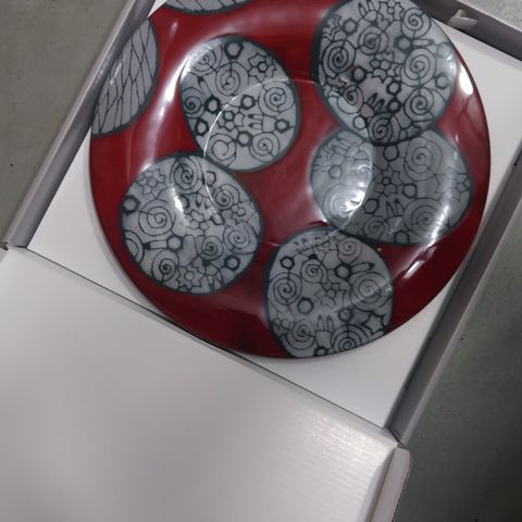 Pentikin Studion valmistama kukkakuvioinen tarjoilu vati.Anu Pentikin signeeraus.K.4cm,halkaisija 44 cm,paino 1543 g.