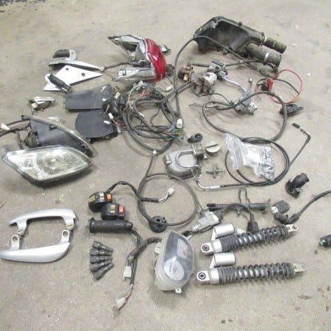 ovat helkama s 2 skotterin osia mutta sopivat myös muihinkin skottereihin kaikki osat yhteis hintaan 80e tai 16-10e kappale osat ovat etu jarru satula jossa palat 15e-jarru letku 10e-2kpl peilejä 10e-valokatkaisin 10e-uusi mittarin vaijeri 15e käynistin poljin ja ratas 16e-kaasarin kurkku 15e veto hihna 10e-satulan lukkoavaimella ja vaijerilla 16e- 1akku 10e yhtensä ja toinen kuvassa oleva akku ei ole myynissä enään - jarrukahva jossa säiliö ja letku 16e satulaa ei ole enään kaikki muut osat on ehkä satulan alaosa siis toi missä on saranat löyty vielä