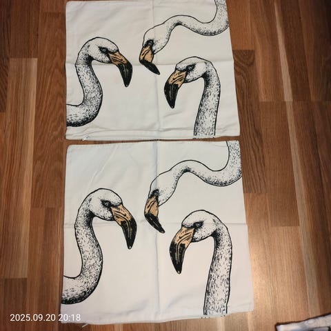Figure Lennol oy suomlainen tuote ( 2 kpl) Kangas puuvillaa. Valkoinen pohjaväri ja musta kohokuviointi( tuntuu sametilta)Vetoketjut yhdellä suvulla, rjhät ja puhtaat. Hinta 3 euroa kpl tai 5 euroa molemmat