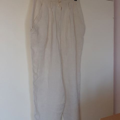Matalavyötäröiset, pehmeäpintaista 100% puuvillaa, ei joustavaa materiaalia. Housujen koko on pieni 36. Ehjät ja siistit kaikin puolin, ei käytön jälkiä.