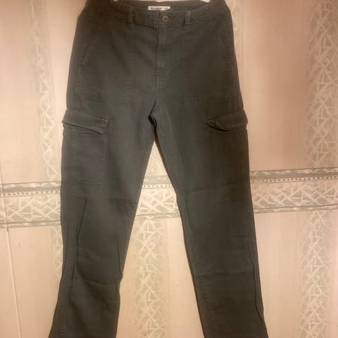 Suklaan ruskeat matalavyötäröiset reisitaskuhousut. Materiaali pehmeäpintaista 100% puuvillaa, ei joustavaa. Housujen koko on pieni 36.