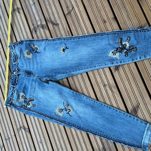 Myydään uudet Desigualin farkut tuuma koko 34. Kankaan kuviot samettimaista kohokuviota. Malli on kapea - Materiaali joustaa sillä elastaani 2% muutoin puuvillaa 98%. Nouto tai postitus ok.