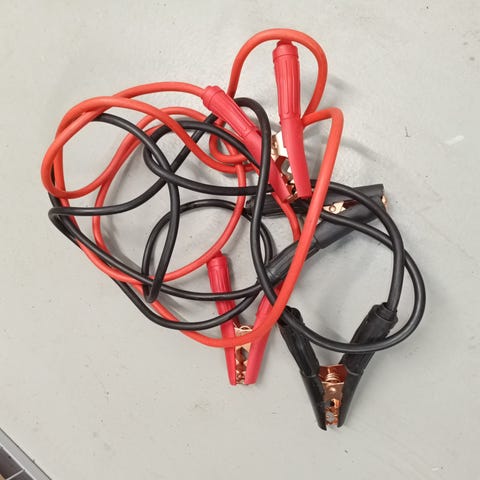 Laadukas akkukaapelipikaliitin ja laadukkaat hyvän tuntuiset kaapelit. Kaapelien mitta noin 155 cm. Hinta 30 euroa.