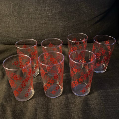 Kuvan mukaisia mehulaseja ja vesilaseja.