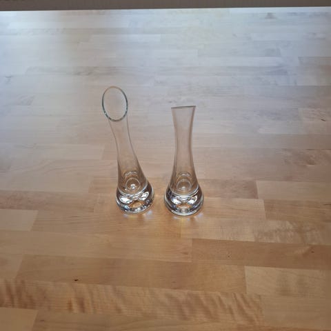 Myydään lasisia maljakoita 18 kpl. Maljakon korkeus 17,5 cm ja suun halkaisija 14 cm. Hinta 8e/kpl, 20e/3 kpl. Vain nouto.