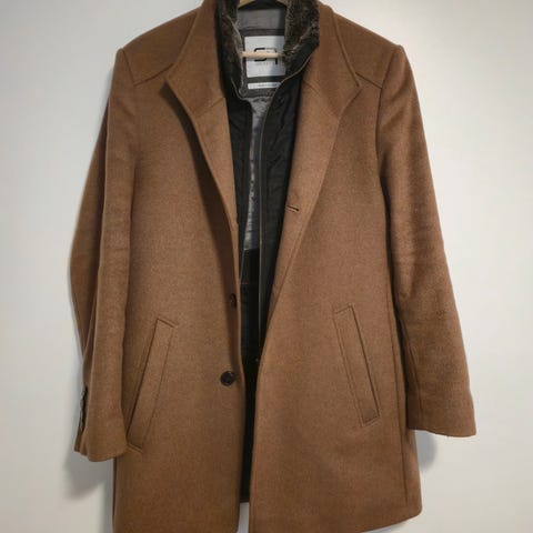 Noin 3 kertaa käytetty miesten villakangastakki, jäänyt tarpeettomaksi joten tarvitsee uuden kodin, erinomainen kunto, koko 52, merkki S4-jackets, väri harmaa/beige.