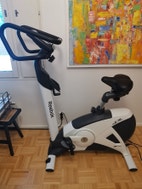 Jämäkkä kuntopyörä. 10 kg vauhtipyörä antaa tasaisen vauhdin ja mahdollistaa painavankin henkilön kuntoilun. Säädettävä satula sekä vaakasuunnassa, että korkeudessa. Kuljetuspyörät edessä. Mm. 12 harjoitusohjelmaa. Netistä löytyy paljon tietoa ko. pyörästä, myös käyttöohje. Nouto Leppävaarasta.