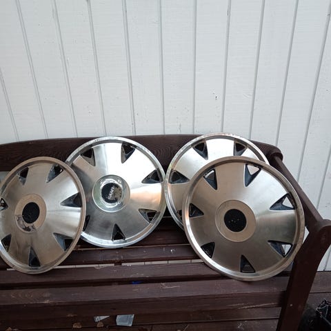 Kuvan mukaiset Saab 15" pölykapselit. Yksitellen 5 €/kpl ja 3 kpl yhteensä 10€