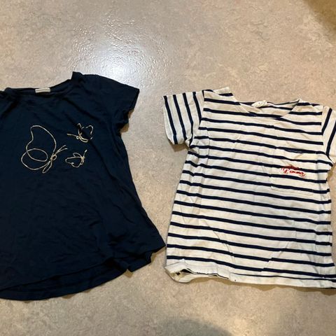 Pomp de lux T-paita, koko 110/116 mutta ottaisin käyttöön jo koossa 104. Väri tumman sininen, kultahippuja ympäri paitaa.