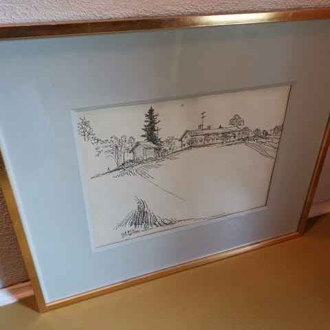 Matti Korhosen tussipiirustus vuodelta 1988. Koko 68 x 61 cm.