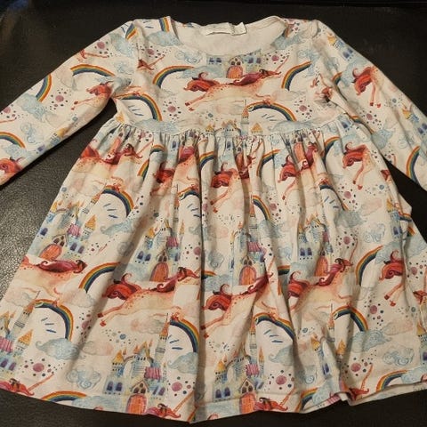 Suomalainen Riiminka design mekko, koko 98/104
