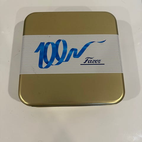 Myydään Fazerin peltinen keksirasia / leivosrasia / rasia. Vanha, 90-luvun alusta. Ikäisekseen erittäin hyväkuntoinen. Mitat: 17 x 17 cm, korkeus 5,5 cm.