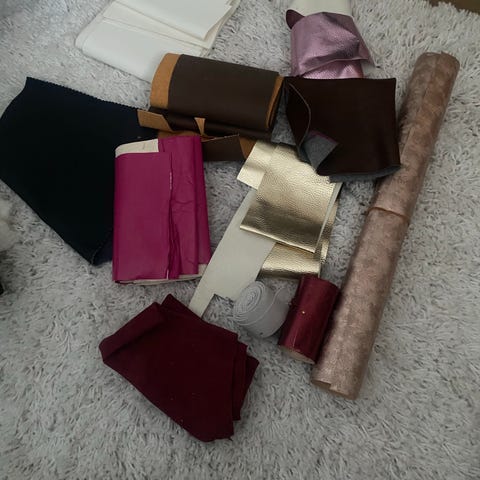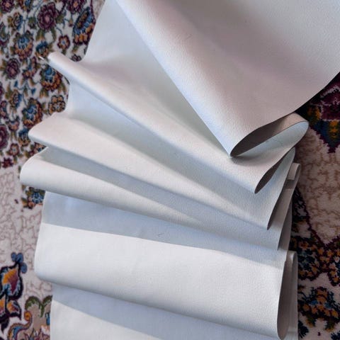 Vihreä kalustenahka, paksuus 1.0-1.2 mm, koko n 2,3 m2. Löytyy muutama kpl. Hinta 30€ vuota.