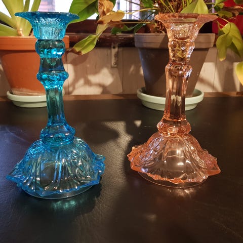 1970 luvun ilmeisesti ruotsalaiset kirkasta lasia olevat priimakuntoiset ja kirkkaan puhtaat, erinomaiset kynttilänjalat 2 kpl talviseen pimeyteen tuovat tunnelmaa varustettuina kruunukynttilöillä, lasimassassa kuplia. Korkeus 15,4 cm; sakarasta sakaraan halkaisija kruunu 6,0 cm ja pohja 9,8 cm. Myydään yhdessä, hinta yhteensä.