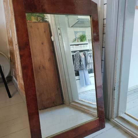 Vanha antiikkipeili alkuperäisellä peilillä, fasetti hiottu. Todella painava, pelissä ajan tuomaa patinaa. 65*46 cm