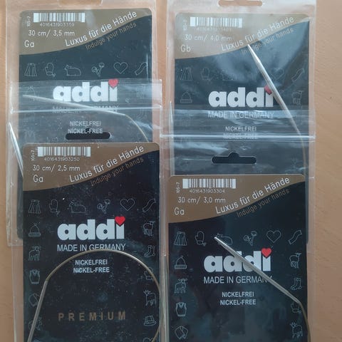 Addin pyöröpuikot. Uudenveroiset, vain yksi pipo on neulottu näillä. Koko 9, pituus 40 cm. Hinta: 7e ´postit 2.75e/toridiili/nouto