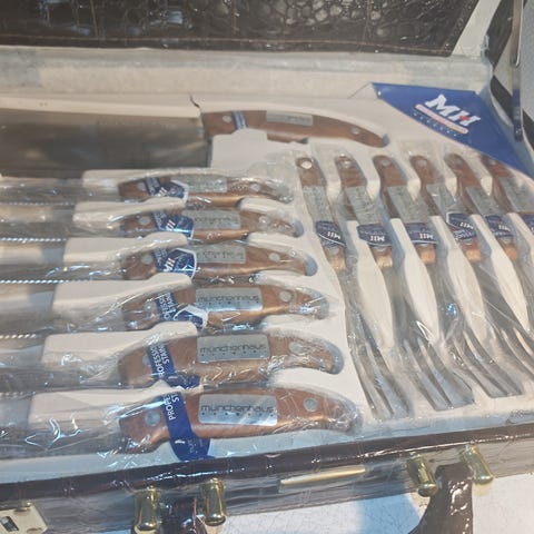 Kinkku haarukka/veitsi, salaatti aterimet,veitset