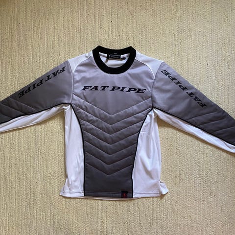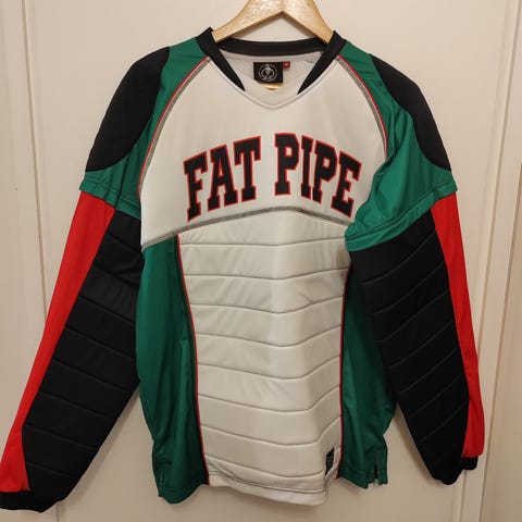 Fat Pipe maalivahdin paita, koko 130/140 cm. Selässä numero 1. Kevyesti topattu.