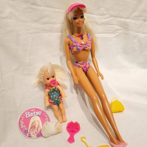 Mukaan myös settiin kuuluva koira, käsilaukku ja muut tavarat.