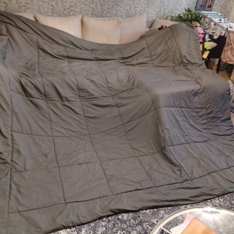 Valkoinen, vähän käytetty parisängyn päiväpeitto. Kiiltävä.