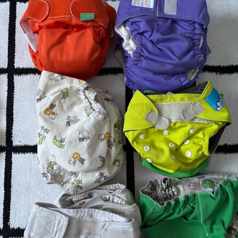 2x Toukka merkkiset bambuimut ja Toukka merkkinen värikäs kukka vaippa hyvässä kunnossa, harvoin käytetty, teipit toimivat hyvin 10€ one size vaippa