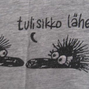 Vaaleanvihreä kiroileva siili aiheinen t-paita. Naisten malliston lyhythihainen paita S. Hauska t-paita mikä on koristeltu piirretyllä siili aiheisella kuvalla ja kirjoitetulla tekstillä. En voi mitään sille jotta tykkään siitä ääliöstä - teksti on paidassa siilin ajatuskuplana. Tämä paita on aika kapea malliltaan. Paita käy hyvin xs- kokoiselle naiselle myös päälle. Hyväkuntoinen käytetty paita. Kiva pirteä asennepaita jollekin tytölle tai pienelle naiselle. Hauska lyhythihainen paita mikä sopii hyvin jollekin räväkälle naiselle päälle.