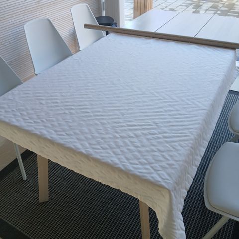 Myydään puuvillainen pöytäliina. Pöytäliinan koko on 146 x 177 cm.