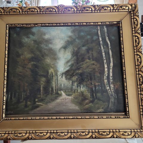 Öljymaalaus "Metsätie". Maalauksen mitat: 30 x 35cm. Ei kehyksiä. (Nouto tai postituskulut lisätään hintaan).
