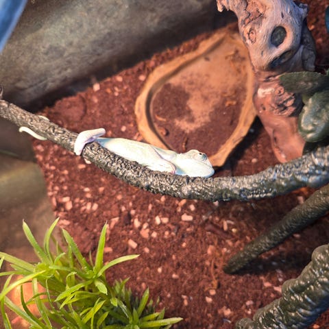 Sinikieliskinkki (Tiliqua Gigas) uutta kotia vailla. Ostettu meille kaksivuotiaana Faunattaresta, nyt 9-vuotias Syö, luo nahkaansa säännöllisesti ja muutoinkin toimii normaalisti. Päiväaktiivinen, köllöttelee mielellään lämpölampun luona ja seurailee tapahtumia terran lähellä.