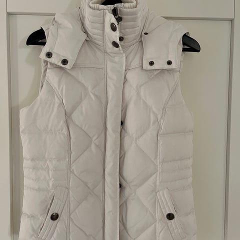 Vähän käytetty musta toppaliivi neljällä taskulla. Ainut moite kauluksen sisäpuolella meikkivoiteesta jäänyt vaalea läikkä, ei näy ulospäin. Liivi on muhkea ja kerran pesty.