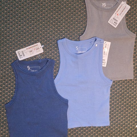 Cropattu ribbi-materiaalipaita. Olkapäillä pienet rypytykset, kauniisti leikattu pääntie. Kuvissa S-koon yllä, alkuperäinen koko on M. Menee molemmille. Eettinen merkki!
