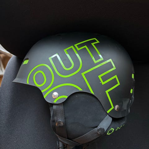Noin 4-5 vuotiaalle laskettelukypärä.