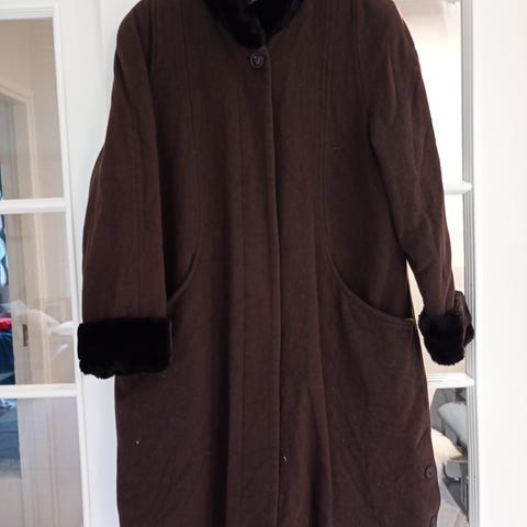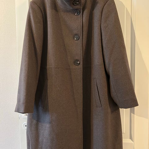 Tarpeettomana myydään lämmin vuorellinen tummanharmaa villakangastakki.