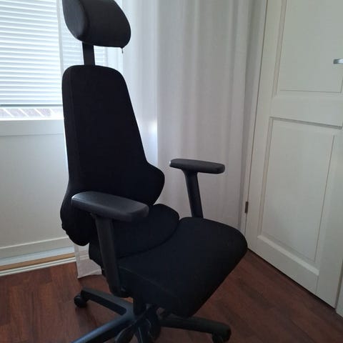 Seisomatuoli Sitool on korkea pyöreä tuoli esim. sähköpöytäkäyttöön. Oranssi istuinkangas. Vain nouto.