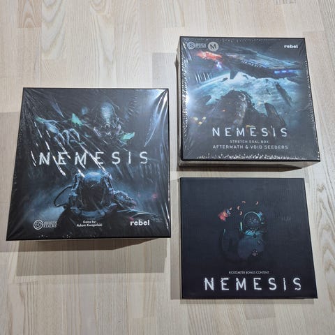 Wizard School board game. Bought from Kickstarter, with any Kickstarter exclusives included. Played only once.