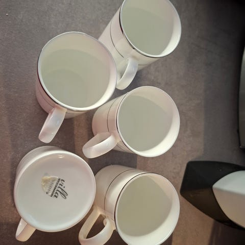 Villa Collection Denmark-merkkiset keittiöpurkit kahville, teelle, kaakaolle ja sokerille & basilikalle 4 + 1 kpl. Isot purkit: korkeus n. 15 cm+nuppi ja halkaisija kannen päältä n. 11,5 cm / kannen alta n.10cm. Yrittipurkki: korkeus n. 8.5 cm+ nuppi ja halkaisija n. 5,5 cm. Käyttämättömiä, olleet vain kaapissa koristeena. Ulkopinnassa krakelointia lasitteessa.