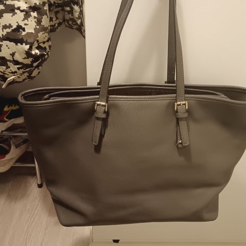 Laadukas vaaleasävyinen O.I.S.-merkkinen laukku. Laukussa on kahvojen lisäksi olkahihna, jonka saa irrotettua pois. Päällä vetoketjukiinnitys. Laukun sisällä on käytännöllisiä pikkutaskuja, kaksi vetoketjulla ja loput ilman. Kauniita yksityiskohtia, ks. kuvat. Laukun korkeus n. 33 cm. Pohjan mitat: 16 cm x 32 cm. Uudenveroisessa kunnossa. Uutena maksanut 60 e.
