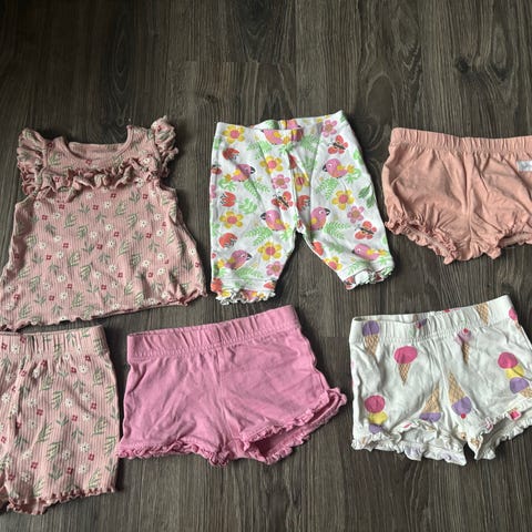Vauvan vaatepaketti, vauvan kesävaatteita, kesävaatteet, lappushortsit, shortsit, body, shortsibody, shortsipuku, lappushortsit, lappuhaalari, vaatepaketti, koko 68, koko 74, koko 80, pellava, pellavashortsit, shortseja.