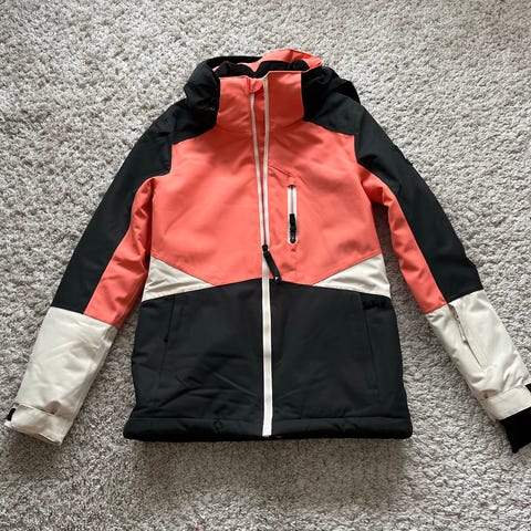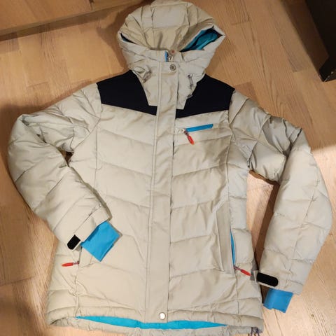 Uudenveroinen. Helmassa kiristysnauha ja lumilukko. Hihansuissa resorit peukalonrei'illä. Hupussa kiristysnyöri. Vetoketjulliset sivutaskut ja hissikorttitasku.