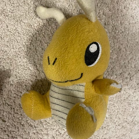 Myytävänä kuvan Pokemon-pehmolelu Dragonite (30cm). Pehmolelu on ehjä ja siisti, mutta siinä jonkin verran normaalia leikin jälkiä. Kissatalous.