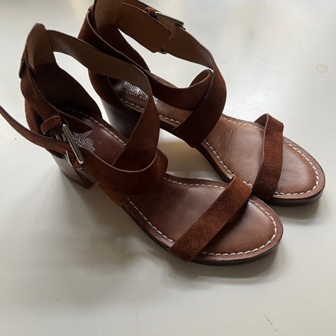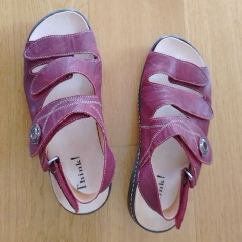 Kerran pidetty, uudenveroisessa kunnossa olevat THINK! Traudi-korokepohjasandaalit Peter Hahnista. Hyvin kauniit ja mukavat sandaalit vuohennappa-nahkaa.Tarranauhalla säädettävä nilkkaremmi. Nahkainen sisäpuoli ja hieman pehmustettu sisäpohja. Ulkopohja kumia. Korko n. 4,5cm. Loppuunmyyty malli. Mahdolliset postikulut 7,80€.