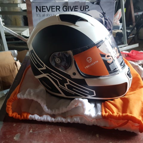 Schuberth SR2 turvallinen, kevyt ja laadukas kuitukypärä kadulle ja radalle, suunnittelussa panostettu nopean ajon ominaisuuksia. Käyttämätön.