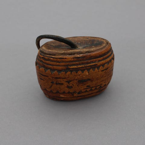 Tuohinen nuuskarasia 1900-1910 ajalta. Kannessa nahkaraksi. Pohja ja kansi puiset. Rasiassa pykäläreunaiset kehän tuohisiirnat. Käsintehty. Käytetty nenänuuskan säilyttämiseen. Koko 5x8x3cm.