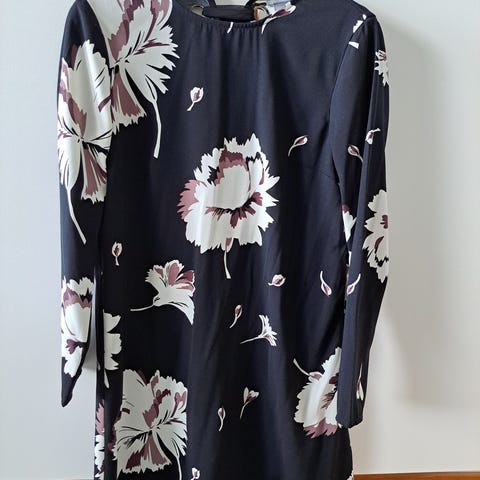 KappAhlin supersöpö röyhelöpaita / sifonkipaita. Musta pohja, jossa valko-keltaisia kukkia, päivankakkaroita?