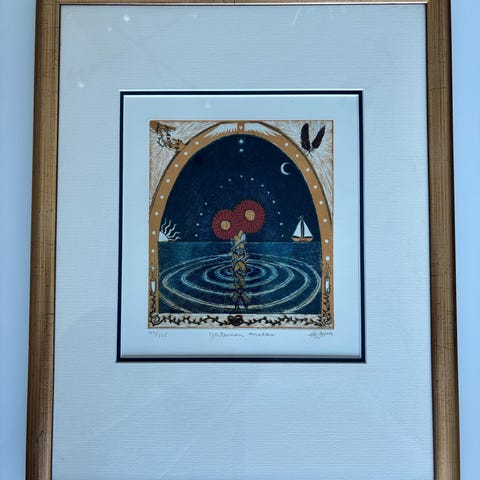 Hanna Variksen taulu. Sininen hetki. 40x30cm. Sign. 2004.
